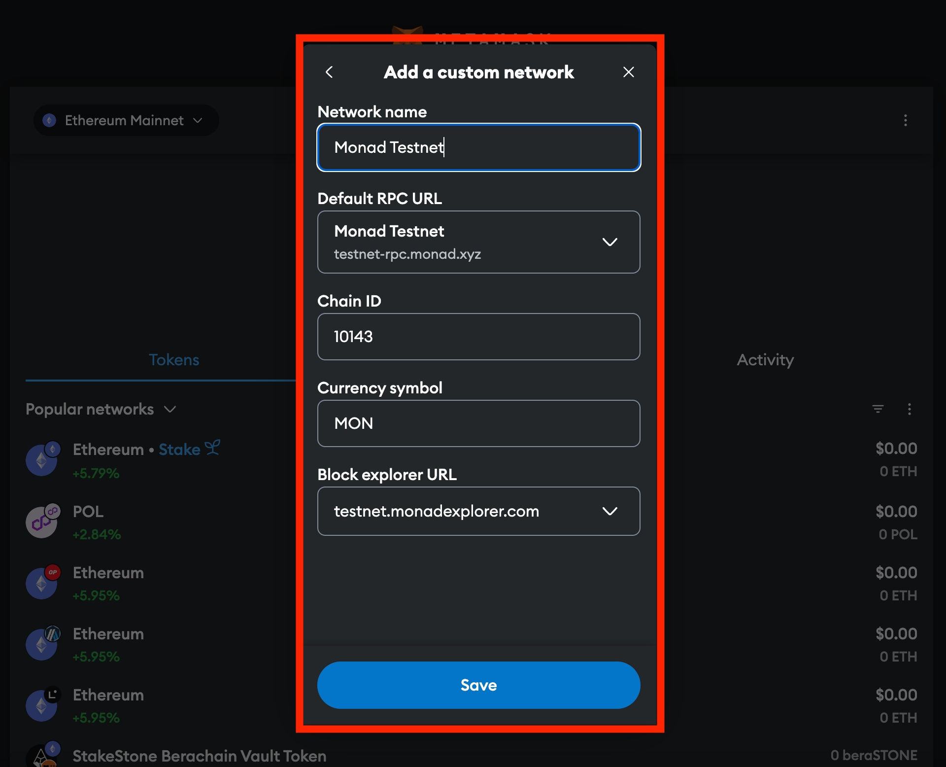 Follow this quick guide to add Monad Testnet to your MetaMask wallet.