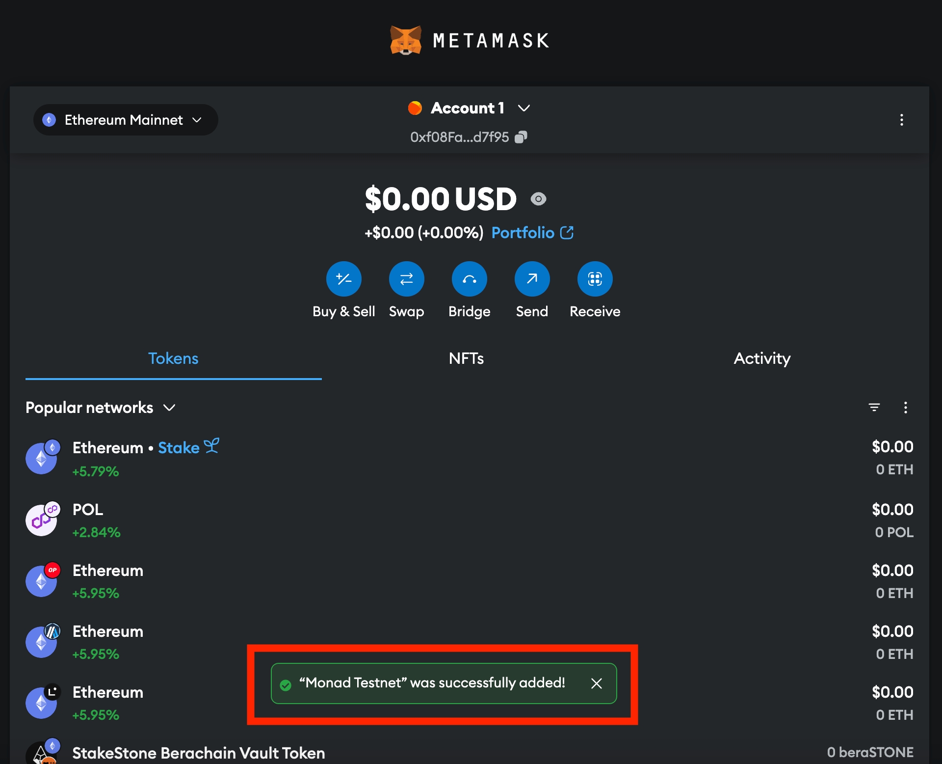 You can now see and use the Monad Testnet network in your MetaMask wallet.